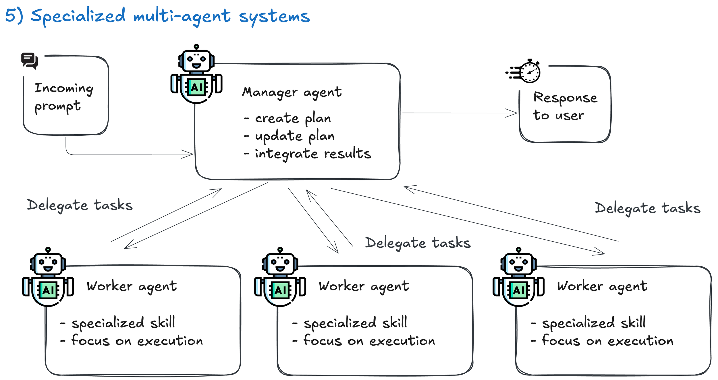 How it works: A “manager” agent decomposes the task and delegates to worker agents (e.g., SQL, plotting, reviewer), then integrates their results