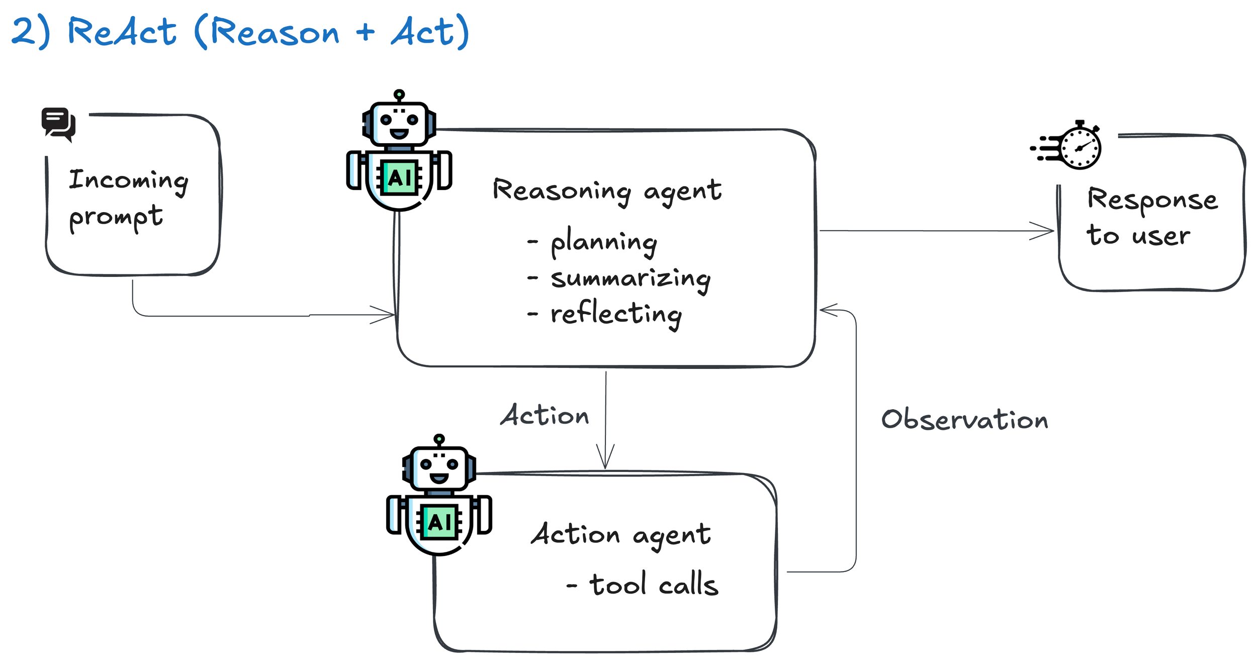 👉 Reach for ReAct when you notice tool-hopping or reasoning becoming the bottleneck.